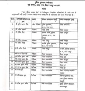 CG Police Transfer Breaking: पुलिस विभाग में फिर बड़ा फेरबदल, 30 अधिकारियों के नाम आदेश जारी…