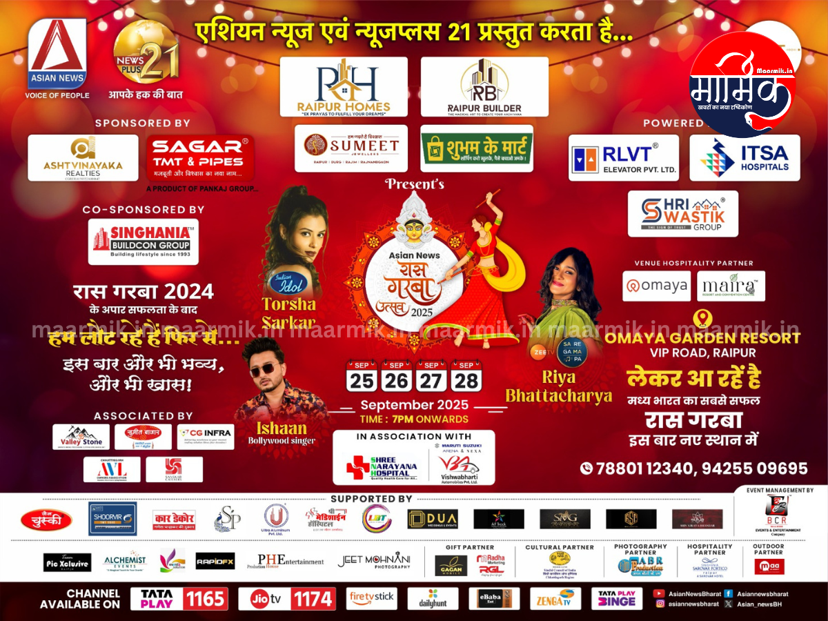 रायपुर: एशियन न्यूज और न्यूजप्लस 21 की प्रस्तुति रास गरबा 2024 की सफलता के बाद इस साल फिर से राजधानी रायपुर नवरात्र की भव्य गरबा रातों का गवाह बनेगा। Raas Garba 2025 का आयोजन 25 से 28 सितंबर तक वीआईपी रोड स्थित ओमाया गार्डन रिज़ॉर्ट में किया जाएगा।